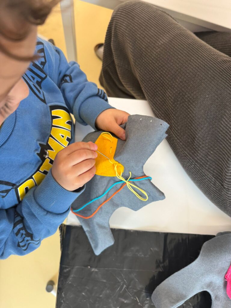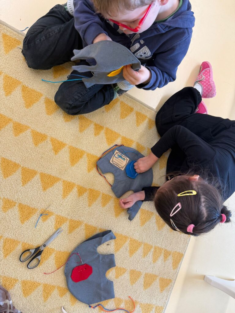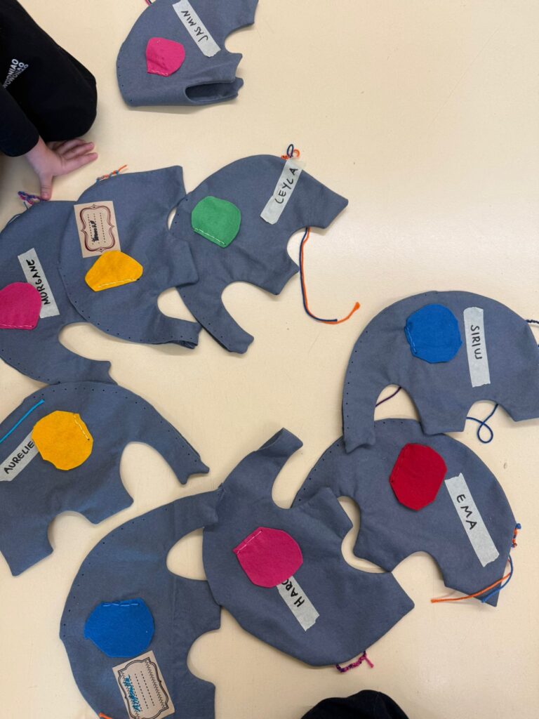 Les 1H sont en train de créer leur propre doudou éléphant! Bravo les fourmis!
